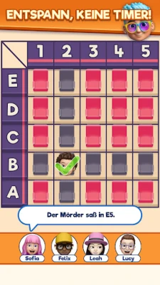Im Herzen von That's My Seat – Logikspiel schlägt ein komplexes, regelbasiertes System, das Sie dazu anregt, logisch zu analysieren und durch Ausschlussverfahren die einzige richtige Lösung zu finden. Es gibt keinen Zeitdruck; genießen Sie das entspannte Tempo, lassen Sie sich von den charmanten Grafiken verzaubern und feiern Sie jeden befriedigenden „Aha!"-Moment. Wer den Wettkampf liebt, kann sich in wöchentlichen Herausforderungen messen, Bestenlisten erklimmen und exklusive Belohnungen verdienen. Darüber hinaus sorgen monatliche Events mit einzigartigen Minispielen und besonderen Inhalten dafür, dass Ihre Puzzle-Reise stets aufregend und neu bleibt. That's My Seat ist die perfekte Kombination aus niedlicher Ästhetik und tiefgründigem Gehirntraining, inklusive eines kostenlosen IQ-Tests für alle, die ihre geistige Fitness überprüfen möchten.